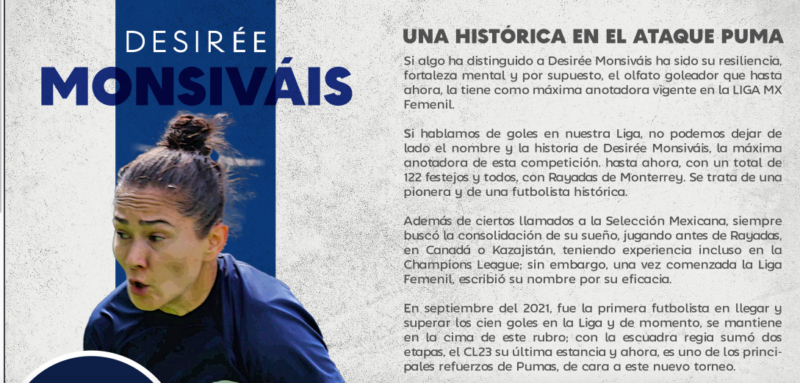 Desirée Monsiváis, máxima goleadora de la Liga MX Femenil y de Rayadas, ahora defenderá los colores de Universidad Nacional.