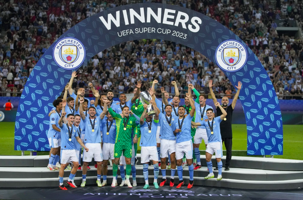 https://www.futbolmundial.com/ El Manchester City marcó su primera aparición en la Supercopa de la UEFA al vencer el miércoles 5-4 al Sevilla en la tanda de penaltis para sumar otra pieza de plata a su vasto botín bajo la dirección del técnico Pep Guardiola.