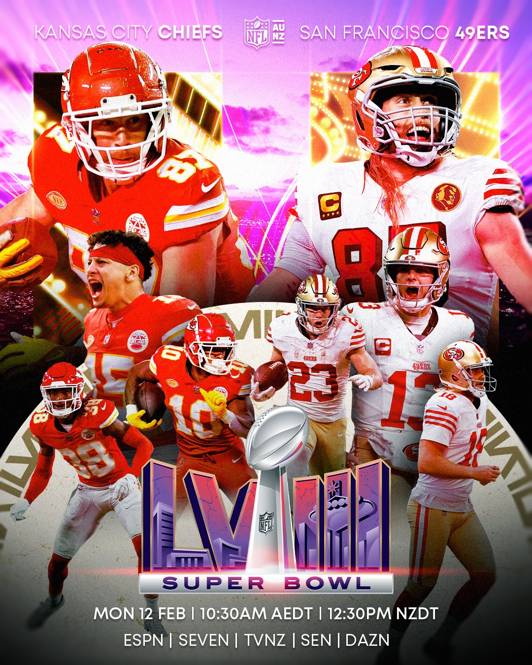 El programa de deportes nocturno de fin de semana, Zona Mixta, respaldará la cobertura con reportajes en vivo de Gurwitz y Cantú desde Las Vegas, incluidos los temas de actualidad a partir del viernes 9 de febrero durante todo el fin de semana del Super Bowl. Las entrevistas programadas para transmitirse desde Radio Row contarán con la participación de MJ Acosta de NFL Network, el miembro del Salón de la Fama de la NFL Emmit Smith, el exjugador de los Dallas Cowboys DeMarcus Ware, el receptor abierto de los Philadelphia Eagles Britain Covey, el receptor abierto de los Rams de Los Ángeles Puka Nacau, y las leyendas de La Liga Iker Casillas y Joaquín Sánchez Rodríguez.