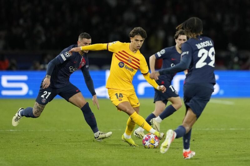 Las primeras ocasiones importantes fueron para el Barça: Raphinha vio cómo Gianluigi Donnarumma impedía su remate por poco en el 5′ y luego paraba uno de sus intentos desde fuera del área (23′), aunque al 37′ logró abrir el marcador. Entre medias, el defensa Nuno Mendes sacó bajo palos un remate de cabeza de Robert Lewandowski (21′).