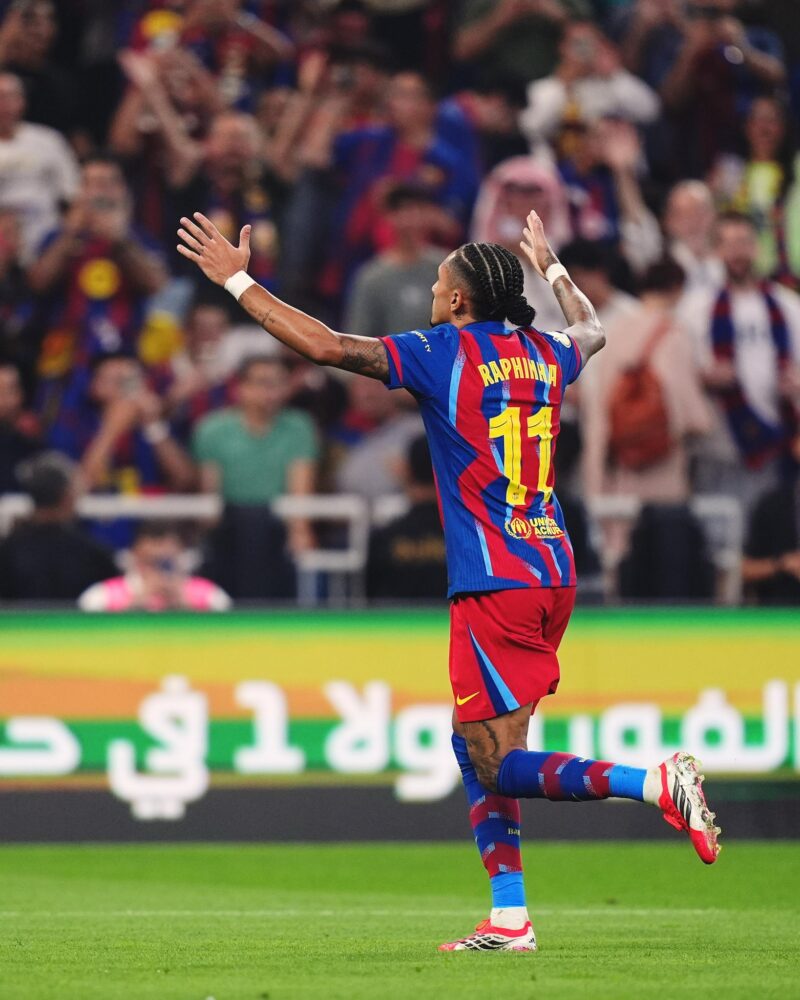 Ya en la segunda mitad, el propio Raphinha completó su doblete al minuto 52, redondeando una noche perfecta para el brasileño y una goleada histórica para el Barcelona.