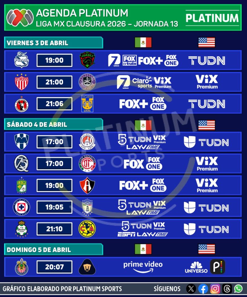 Futbol Mundial.- La recta final del Clausura 2026 ya está aquí y no hay margen de error. Con solo cinco fechas por disputarse, la Jornada 13 llega cargada de presión, cuentas claras y equipos que ya empiezan a sentir el peso de la Liguilla.